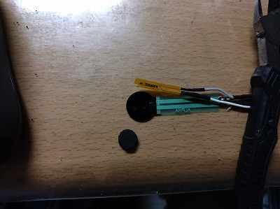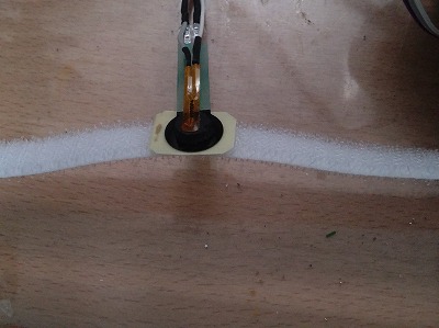 センサには、圧力センサの上にゴム板を接着し、その上に温度センサ(サーミスタ)を接着します。