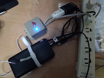 回路を動作させるための5V電源ですが、ここでは不要になった携帯電話の充電器を流用しました。