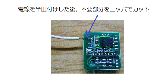 アンテナは、長さ32mmの電線を取り付けただけのワイヤーアンテナにしました。