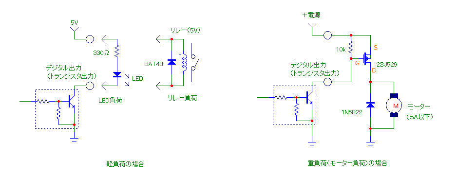 モーターなど比較的に重負荷の場合、PchFETのバッファを追加すると良いでしょう。